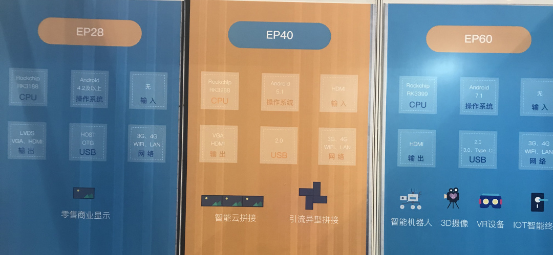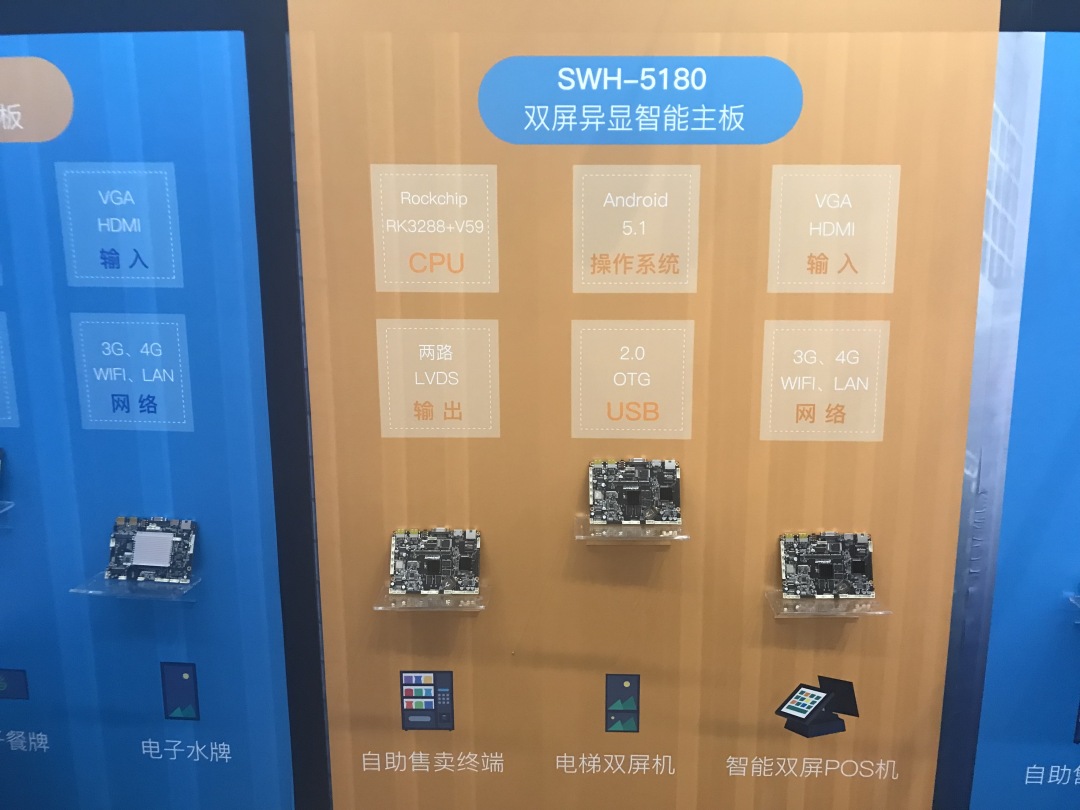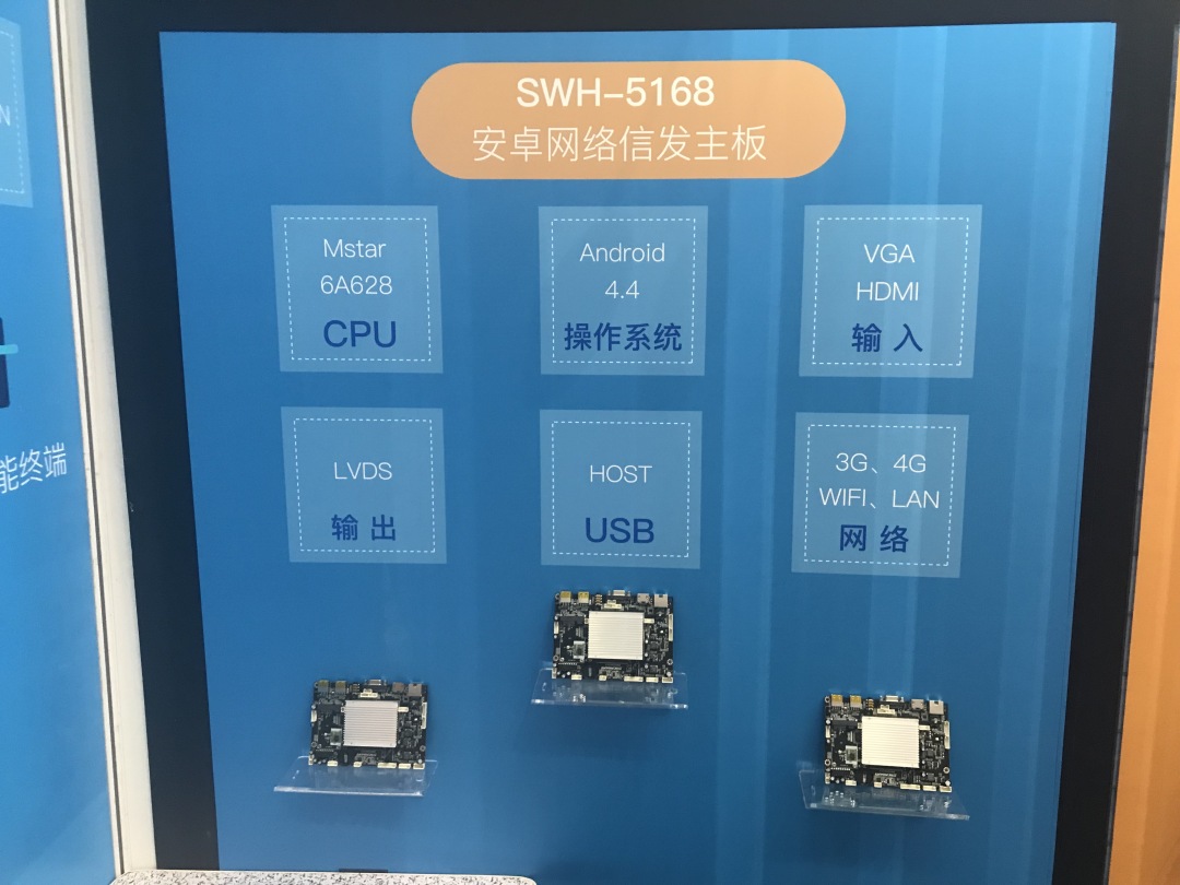 欣威視通緊跟時代的腳步,在原數字標牌的基礎上,推出了應用于智能終端的商顯主板方案。多款安卓智能主板和播放盒參與現場展出,同時推出新款的經典信發小板SWH-DS3128N。