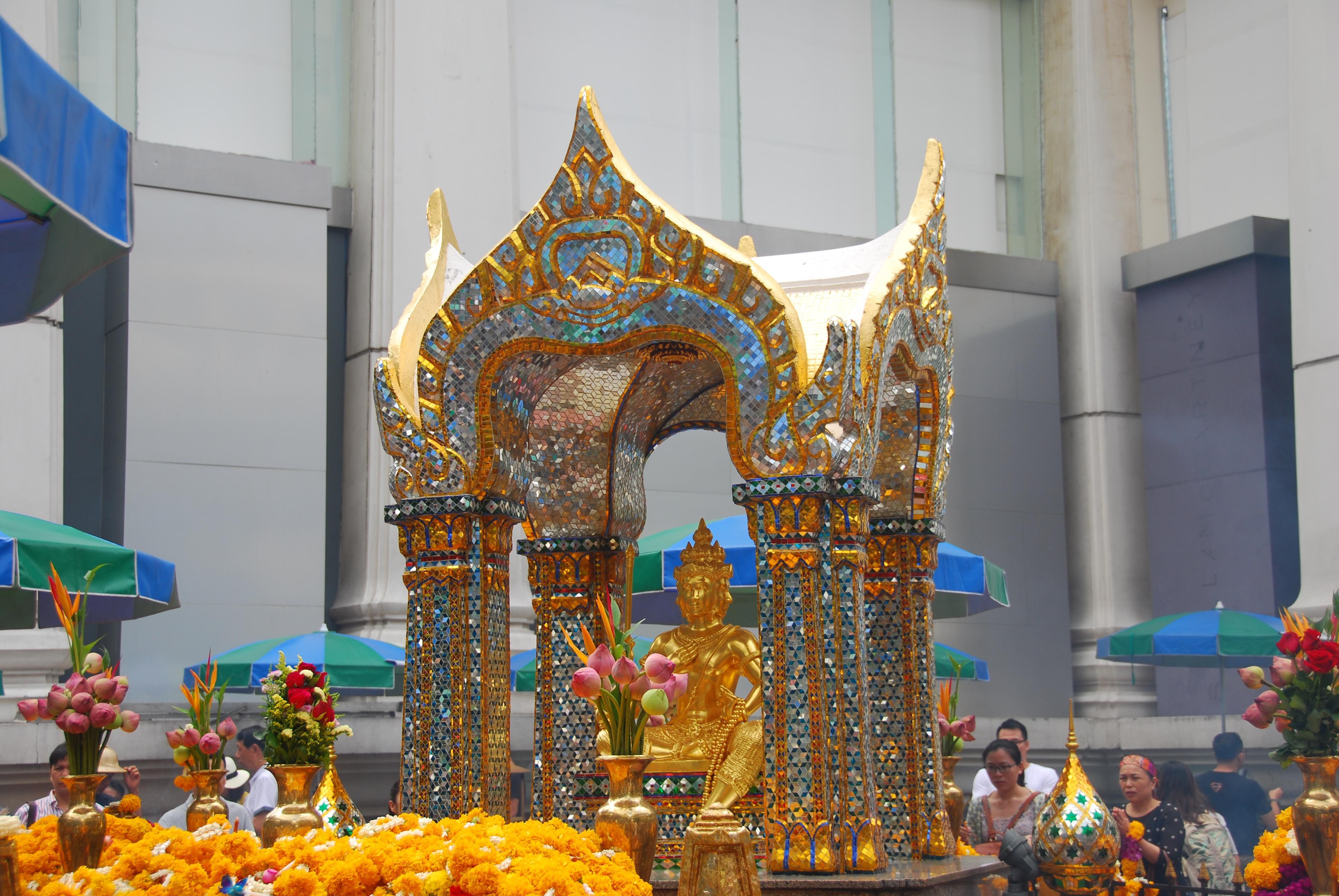 泰國的寺廟很多,供奉的佛像也是數不勝數。四面佛是當地最具特色的佛像,其四面朝向東南西北,分別代表健康、事業、愛情與財運,人稱“有求必應”佛。