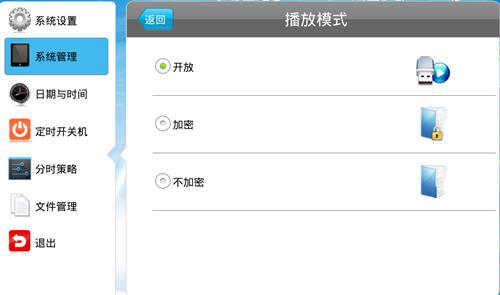 【開放模式】:直接全屏播放U盤根目錄下的視頻和圖片。